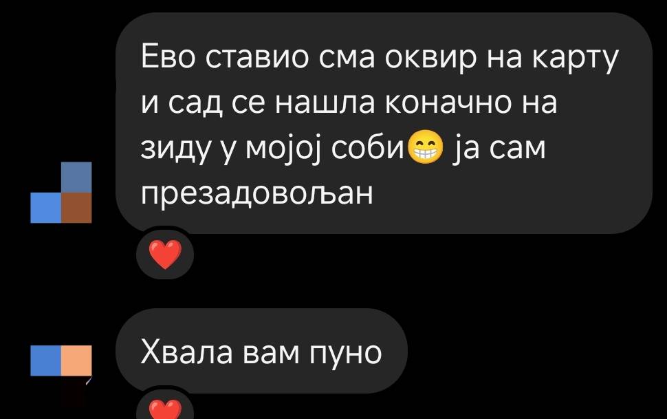 ■ Плакат је без рама и долази у заштитној туби у којој Вам шаљемо, како би био заштићен приликом транспорта. Димензије су једне од стандардних за рамове па можете изабрати који Ви желите.